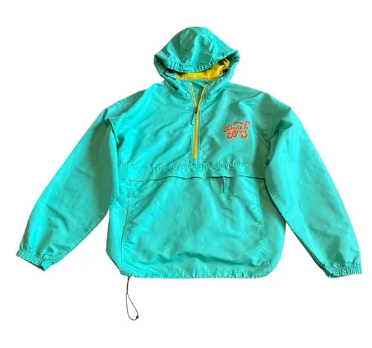 Dutch Bros Coffee Size x-large women's US Teal blue pullover windbreaker jacket with yellow and... Show more