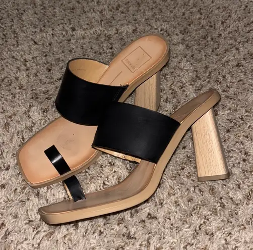 Dolce Vita Black Stella Frans Leather Toe Loop Heeled Sandals Dolce Vita Frans slide Features an ea... Show more