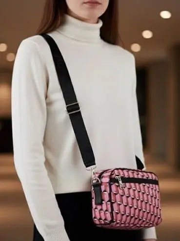 Stylish and vibrant, this geometric pink crossbody bag is perfect for adding a pop of color to any o... Show more