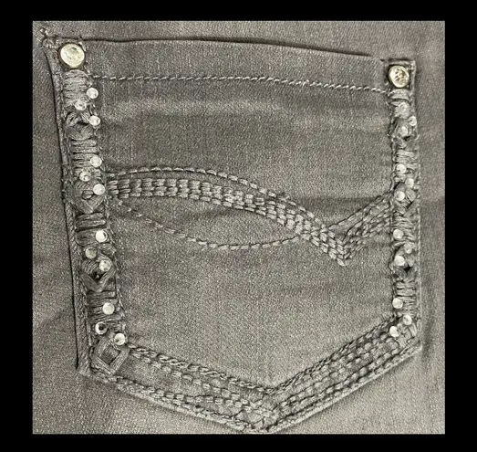 Earl jeans Gray with rhinestone pockets- size 6. ***Refer to measurements as size tag removed. Gently warn and excellent condition. Measurements approximately 14” waste x 37” long x 9” rise. Non smoking home. priced to sell at as is condition. Don’t like my price, make reasonable offer! And thank you for checking my closet. Size M - $18 - From Debbie