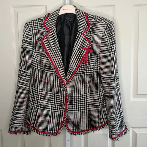 Eci New York Houndstooth Blazer with Red Trim bow and fringe tweed size 14w Stylish houndstooth blazer featuring bold red trim. Perfect for a chic look. Euc for office Christmas or night on the town, elegant, glam, chic, restaurant, dinner