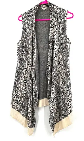 Ecote size small sleeveless long line open front cardigan sweater cream and black floral geometric d... Show more