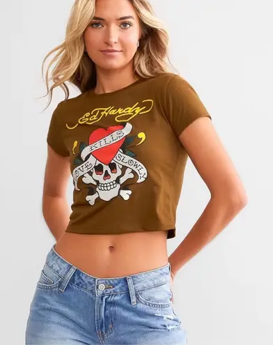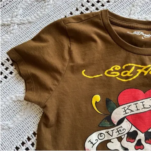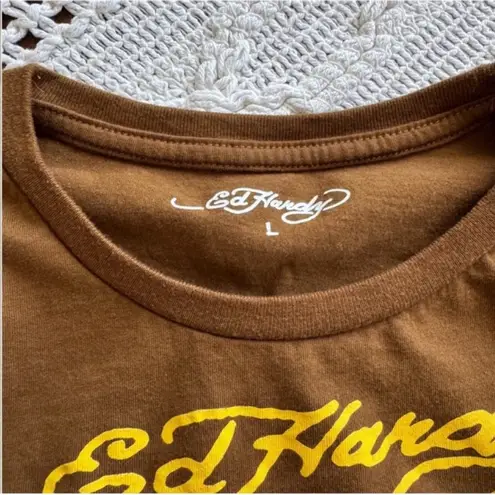 Ed Hardy Olive Graphic Tee with Skull and Banner Brown Size L - $37 - From Campbell