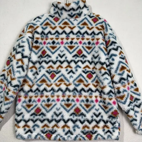 Snuggle up in style with this cozy Eddie Bauer Aztec print fleece pullover! This 1/4 zip sweater is... Show more