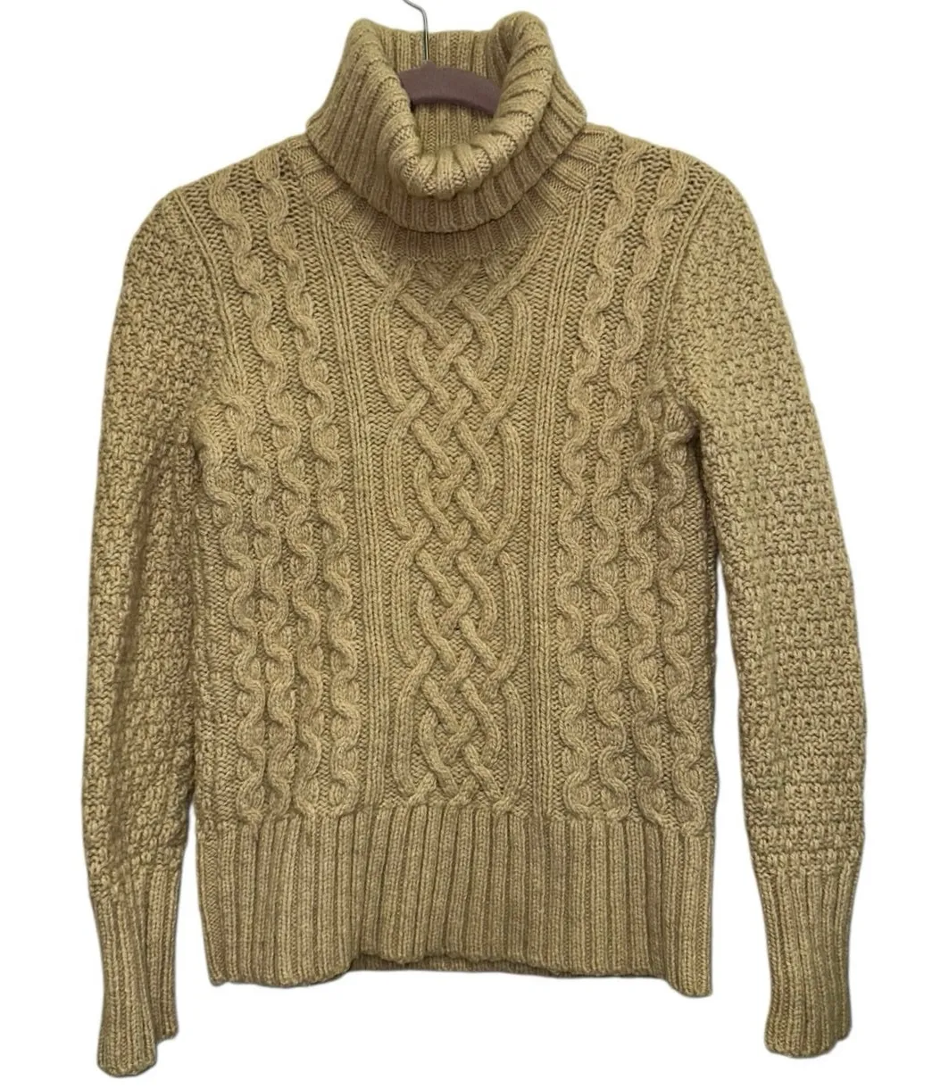 EUC Eddie Bauer Cable Knit Fisherman Turtleneck Sweater Lambswool Blend Tan Chunky Beautiful Eddi... Show more