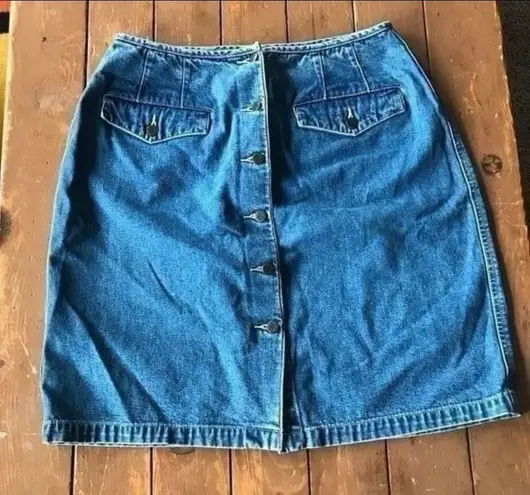 Eddie Bauer Vintage Button Front Jean Skirt Two front pockets 100% cotton Waist 14” Length 19” Size... Show more