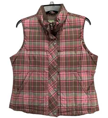Eddie Bauer Womens Premium Goose Down Puffer Vest Size M Pink Multi Plaid Pockets Excellent pre own... Show more