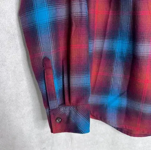 Eddie Bauer Red/Blue Checkered Flannel Plaid Button Front Top Size Small Collared, long sleeve, butt... Show more