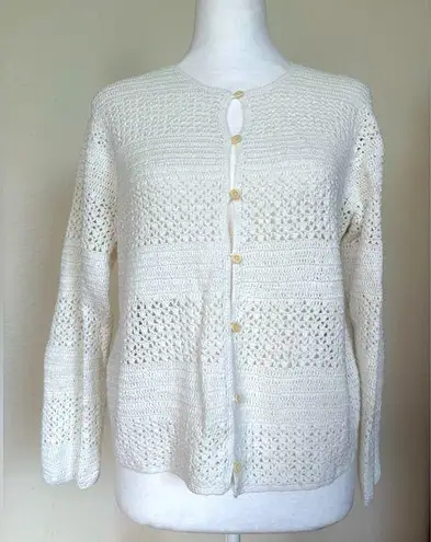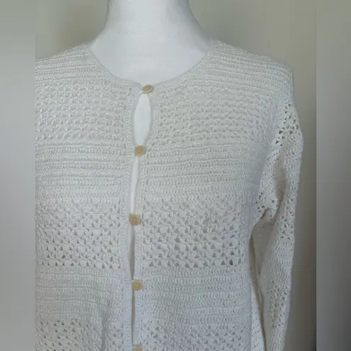 Eddie Bauer White Knitted Long Sleeve Button Up Cardigan Size MP Petite - $11 - From Stephanie