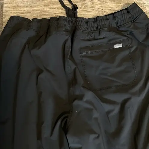 Stylish black pants with a comfortable fit. Features drawstring waist and cuffed hems. Perfect for c... Show more