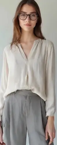 EILEEN FISHER 100% Silk Georgette Crepe Classic V-neck Shirt Button Down S Flaw‎ Gray - $40 - From Tiffany