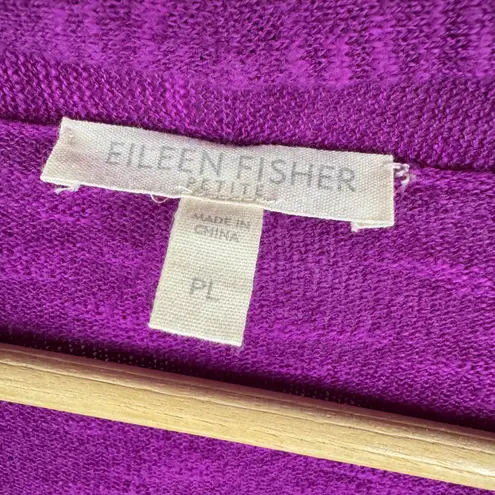 Keywords: Eileen Fisher cardigan, Petite cardigan, Purple sweater, Linen blend knit, Open front cardigan, Womens knitwear, Casual sweater, Layering piece, Designer cardigan, Comfortable sweater, Stylish knit, Vibrant color top, Relaxed fit cardigan, Eileen Fisher, Cardigan, Petite, PL, Purple, Organic Cotton, Organic Linen, Open Front, Lightweight, Minimalist, Sustainable, Ethical, Capsule Wardrobe, Lounge, Layering, Soft, Natural, Artsy, Normcore, Cozy, Eco Friendly, Basic, Essential