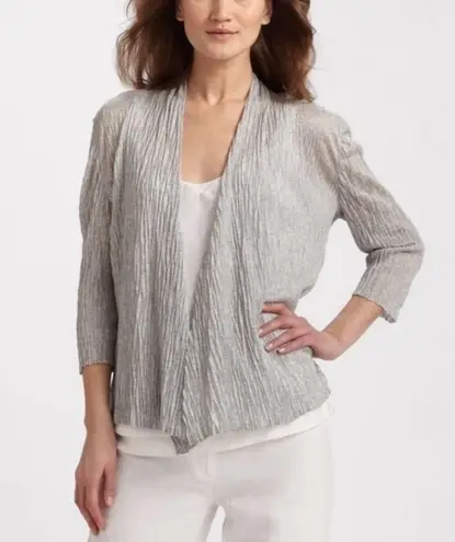 Eileen Fisher Pressed Crinkle Simple Cardigan Open Front Draped Color: Grey has a slight silver sh... Show more