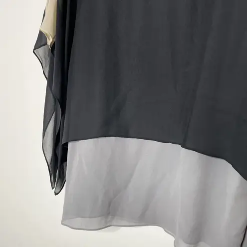 A cape-like overlay with a colorblock yoke creates the illusion of well-matched separates in this re... Show more