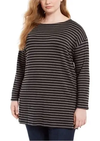 Eileen Fisher Tencel Stretch Terry Stripe Tunic Top in a Black & Gray Stripe. Excellent used conditi... Show more
