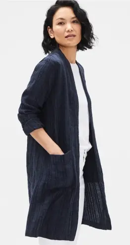 Eileen Fisher Textured Organic Linen cardigan duster Long Jacket | Size Medium Blue - $60 - From Liz