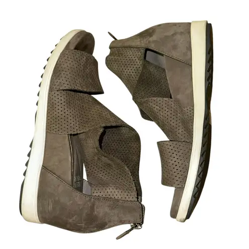 EUC Eileen Fisher Voice Perforated Suede Platform Sandals These taupe perforated suede sandals fea... Show more