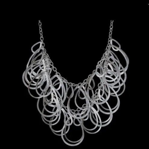 Chic and stylish silver statement necklace. Perfect for any occasion. Elegant Silver Mixed Metal Tear Drop pendants on double chain Statement Necklace Silver Mixed Metal double chain Statement Necklace. This is a large - xl size item.