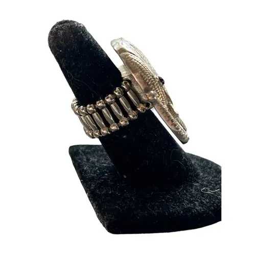 Elephant Silver Tone Stretch Ring Trunk Up Rhinestones 1.5" across Textured - $16 - From Christy