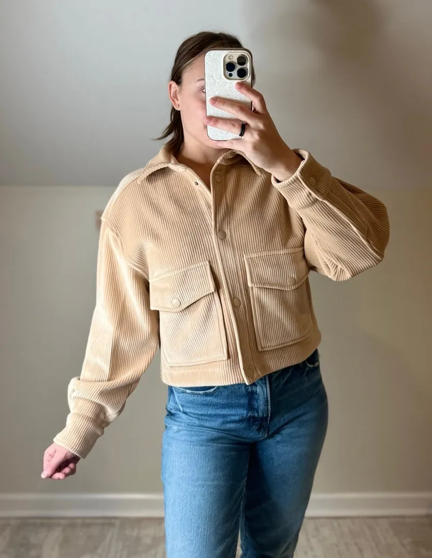 Elie Velvet Corduroy Boxy Cropped Tan Collared Jacket Size M - $49 New With Tags - From Kristin
