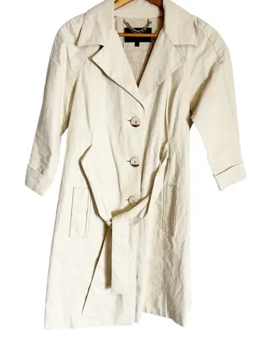 Elisabetta Franchi Beige Linen Blend Belted Button Front Midi Trench Coat 44 Excellent preowned con... Show more