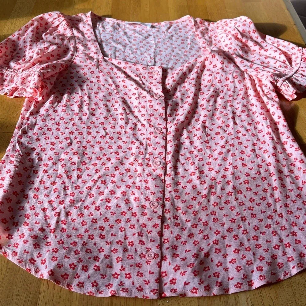 short sleeved top, size Small. There is a square neck and front buttons. Pink - $31 - From Regina
