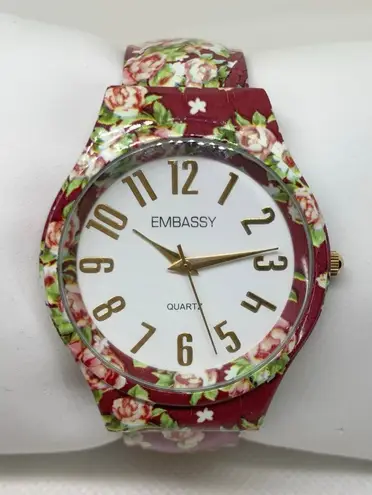 Embassy women quartz analog watch 38mm colorful floral pattern 6.5” running - $15 - From Watch