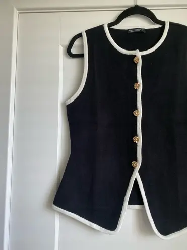 Brand new with tag on . Size :XL . Pit to pit :18” . Waist:16”.bust :20”Length:25”. The Emerson Lang Gold Button Crew Neck Knit Black Sweater Vest in size L is a stylish and versatile addition to any wardrobe. Made from a blend of polyester, nylon, and viscose, this tight-knit sleeveless vest features a classic crew neck and button accents. Perfect for travel, casual outings, or business meetings, this vest offers a luxurious feel with its heavyweight material and timeless design. The black color and solid pattern make it easy to pair with various outfits, while the 90s and preppy themes add a touch of sophistication to any look.