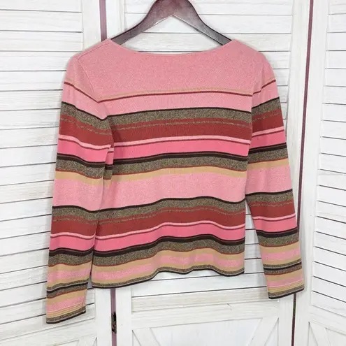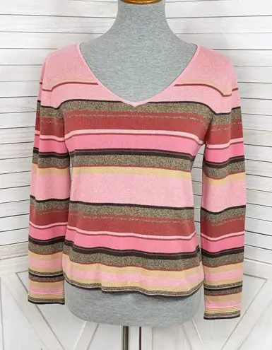 Emma James Petite Striped Multicolor V Neck Sweater Pink Brown Size Large Petite Pink, brown, tan... Show more