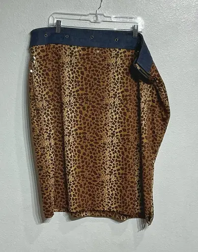 Erika Brooke Tan Leopard Sequins Denim Vintage Midi Skirt Sz 24 - $30 - From Bryanette