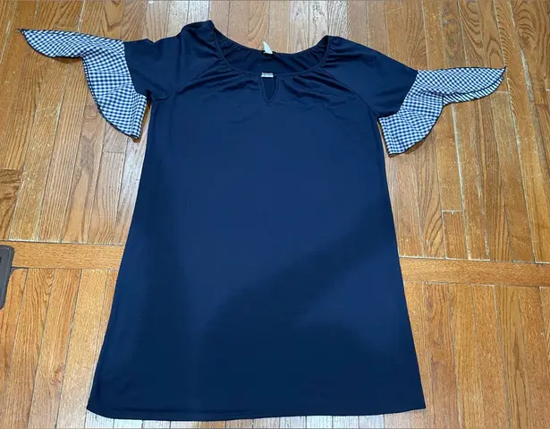 Espresso Navy dress with Gingham Sleeves Blue Size 2X - $22 - From DaisyN