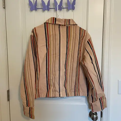 Women’s BDG Lucia chore jacket. Jacket is made of a colorfully striped denim material with full fron... Show more
