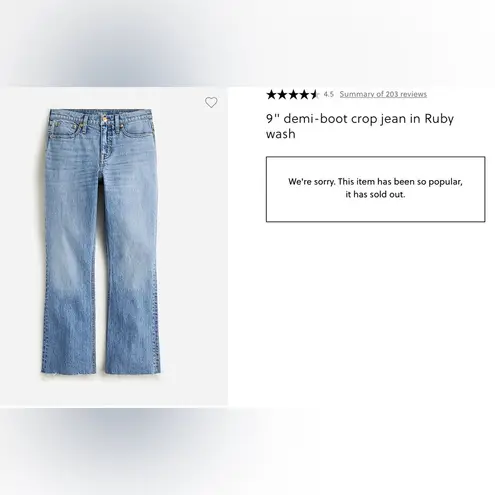 EUC J.Crew Tall 9" demi-boot crop jeanāin Ruby wash Sold Out Sz 28 Customer Return Broken Zipper... Show more