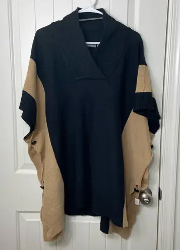 EUC NY Collection women’s black tan buttoned crossover neck knit poncho‎ sweater Size M - $15 - From Emily