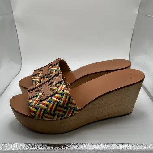 EUC Tory Burch Ines Woven Multicolor Raffia Wedge Platform Slide Sandals US 11 - $120 - From Eva