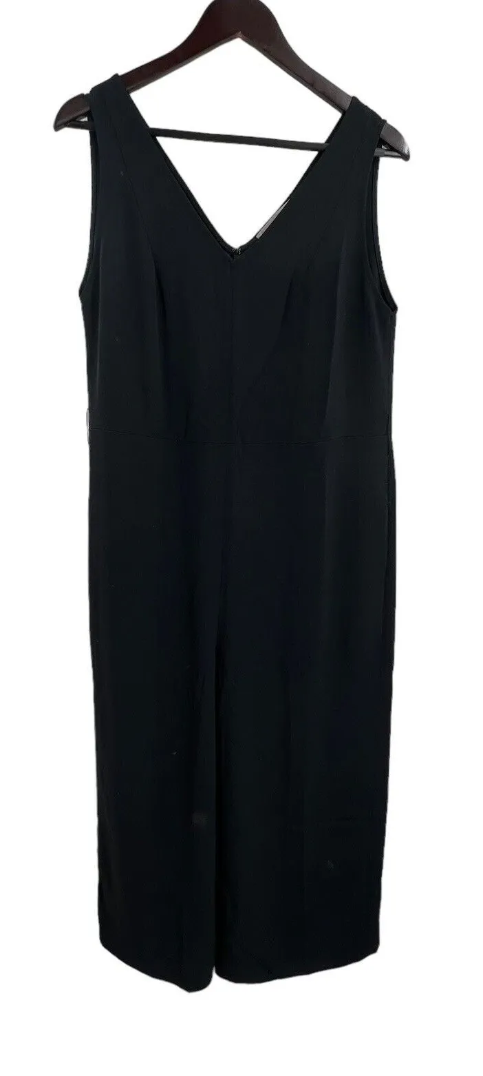 Everlane Black Triacetate V Neck Jumpsuit Sleeveless 8. V neck and back Sleeveless Wide leg Belt lo... Show more