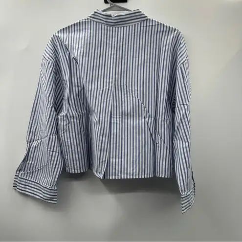 Everlane Cotton PJ Boxy Crop Button Front Blue & White Striped Long Sleeve Top A stylish blend of c... Show more