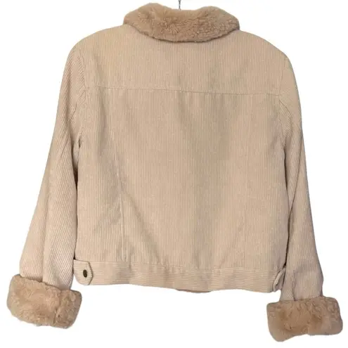 Everly Corduroy open front Jacket Faux fur collar and sleeve cuffs Beige/Tan Pockets Womens Size Sma... Show more