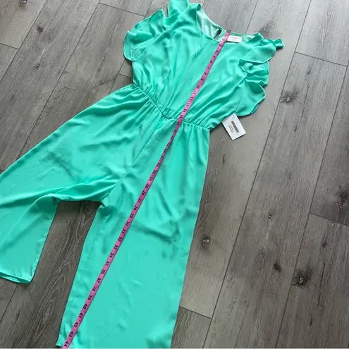 Everly Size medium NWT no rips or stains jumpsuit chiffon lined cropped pant open back mint... Show more