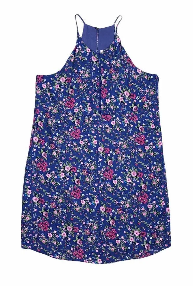 Brand new without tags Everly Periwinkle Blue Purple Floral Spaghetti Strap Shift Sun Dress Size Sma... Show more