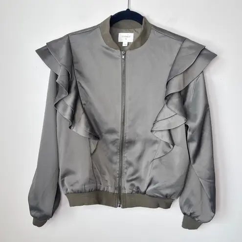 Everly Satin Shoulder Ruffle Full-Zip Bomber Jacket Army Green Size Small * full zip * pockets *... Show more