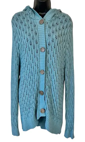 Evy's Tree The Bernadette open knit hooded cardigan in light blue Size XL - $48 - From Second