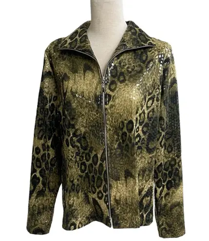 EXCLUSIVELY MISOOK Clear Sequin Paillette Leopard Print‎ Zip Up Jacket MEDIUM - $30 - From Alma