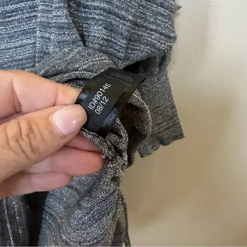 Express - Grey & metallic silver tunic sweater, size S. Boatneck, 3/4 length dolman sleeves. Ruched... Show more