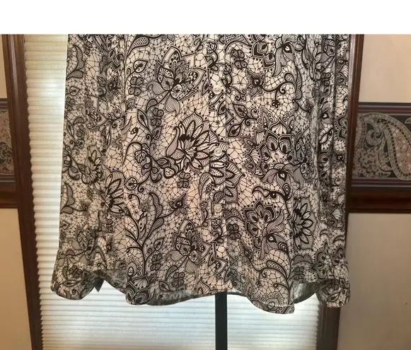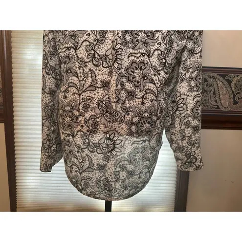 Elevate your wardrobe with the Express Large Black & White Floral Button-Up Blouse, a perfect blend... Show more