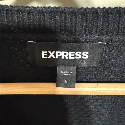 Chic metallic cardigan by Express. Features a striking black and gold knit. Ideal for elegant layeri... Show more