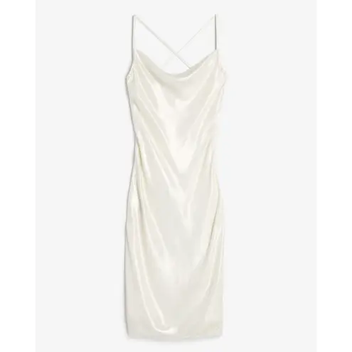 Express Ivory Slip Dress • Brand new w/ tags, unworn. • Cowl Neckline, Luxe Silky Metallic Fabric... Show more