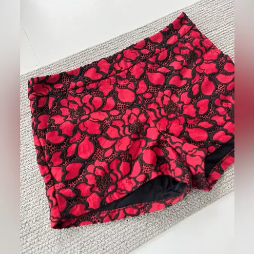 Amazing red and black floral embroidered hot pants or shortie shorts. Perfect for going out, summer... Show more