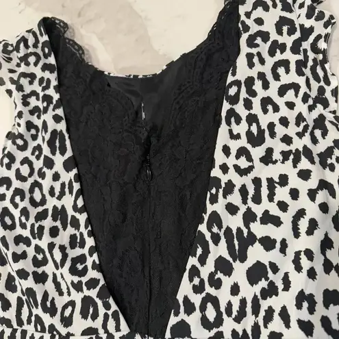 Express NWT Low Back Leopard Print Midi Dress Women’s Size 4 Scoop Neck - Ruffle Sleeves - Lace Bac... Show more