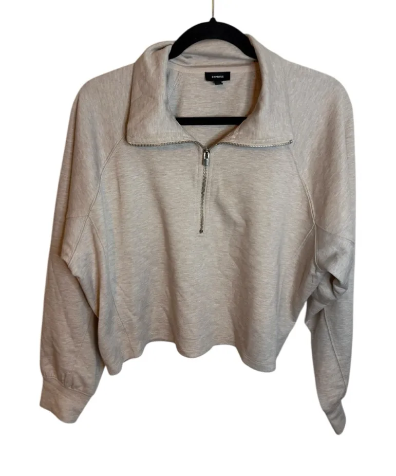 Pre owned like new. No flaws or signs of wear. Adorable oatmeal super soft cropped quarter zip pullo... Show more